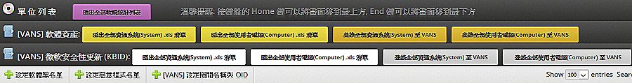 軟體資產支援政府機關資安弱點通報機制 (VANS 系統) API 介接,登錄資訊資產。